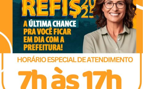 Leia maisQuinta e sexta o setor de tributos estará atendendo em horário especial das 7h às 17h, sem interrupção. A Prefeitura de Coxim informa que quinta e sexta-feira serão os últimos dias para adesão ao Programa de Recuperação Fiscal (Refis 2025). Para facilitar o atendimento, a Gerência de Tributos atenderá em horário especial, das 7h às […]